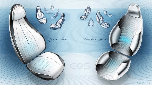 Mercedes-Benz EQS ще радва не само очите и слуха, но ще може да бъде докоснат и помирисан. Има специални рисунки с шефове и перфорация по материалите в интериора, както и десетки програми за масаж, които се управляват от дисплеите. За електромобила е разработен и специален аромат No.6 MOOD Linen, а от неприятните миризми предпазва HEPA-филтър, който е част от опцията Energizing Air Control Plus.