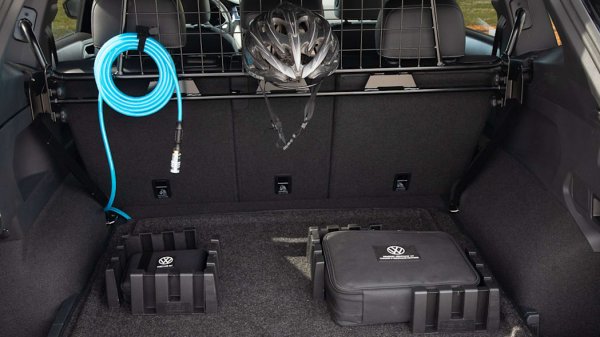 Подобренията по кросоувъра включват допълнителни алуминиеви елементи в черно, а също така и изпускателна система от неръждаема стомана с черни четириъгълни тръби на ауспуха, които напомнят поставяните на "напомпания"Tiguan R. В задната част на автомобила има и три спойлера, както и допълнителен "багажник" за велосипеди.