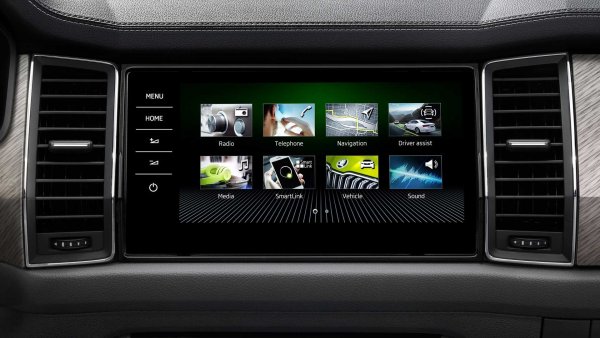 Клиентите могат да избират между три мултимедийни системи със сензорен екран с диагонал 9,2, като те постоянно са свързани с интернет с помощта на eSIM и поддържат Android Auto и Apple CarPlay, а също така и гласов асистент Laura, разбиращ 15 езика. Като опция се предлага изцяло цифров приборен панел с размер 10,25 инча, който може да бъде оформен по 4 начина (при Kodiaq SportLine и RS те са 5).