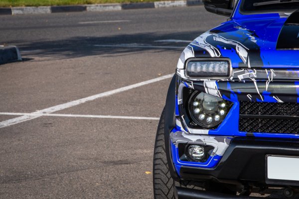 Задните светлини са обновени, а предните са взети от G-Class. Оказва се, че като диаметър фаровете на двата модела - на всъдехода на Mercedes и на този на Lada са напълно еднакви. Закрепването им е различно, като при германския модел то е с много по-сложна система заради допълнителните ксенонови елементи. В случая те са заменени от по-компактни елементи на основата на светодиоди.