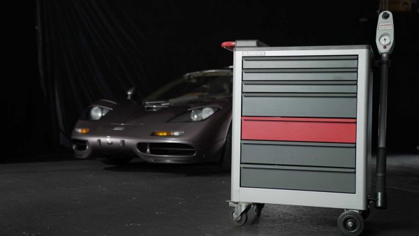 В оборудването са и редките часовници TAG Heuer и комплект от инструменти от титаниев цвят в златист цвят. Има и сандък с инструменти FACOM с нарязана пяна, предлагащ място за всяко парче. Дори гумите са оригинали - Goodyear Eagle F1