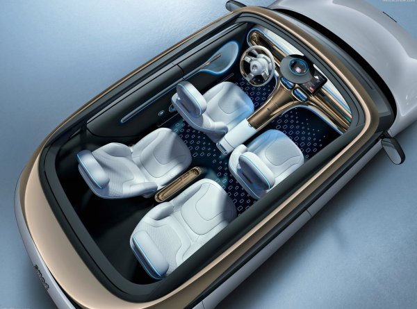 Новият Smart разполага с огромен панорамен люк на тавана, но главна роля в интериора изграе плаваща централна конзола, преминаваща в приборен панел - нещо, което вече сме виждали при модели на Mercedes. В средата е поставен 12,8-инчов екран на информационно-развлекатената система, приличащ на iPad.