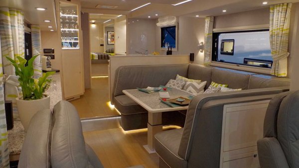 Салонът на туристическата машина е доста луксозен, като само премиум аудио системата Burmester струва около 300 000 евро. Наличен е електрически отварящ се шкаф а посуда, а кухнята е както в една къща - с индукционни котлони, фурна, микровълнова печка, хладилник, миялна машина и дори машина за еспресо. Като опция се предлага и луксозен винен охладител.