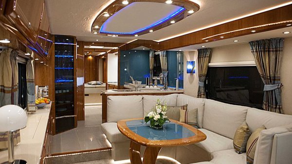 Салонът на туристическата машина е доста луксозен, като само премиум аудио системата Burmester струва около 300 000 евро. Наличен е електрически отварящ се шкаф а посуда, а кухнята е както в една къща - с индукционни котлони, фурна, микровълнова печка, хладилник, миялна машина и дори машина за еспресо. Като опция се предлага и луксозен винен охладител.