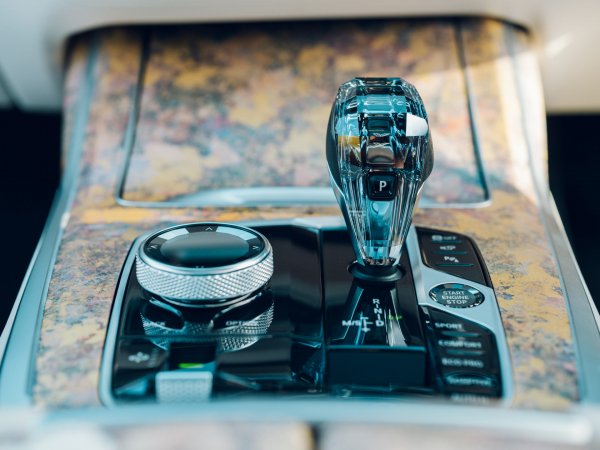 Този материал е широко използван в салона, като украсява централната конзола, таблото и тавана на автомобила. Текстилът със златисти акценти е поставен и върху ключа, който е изработен на ръка.