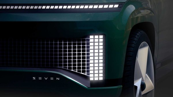 Hyundai Seven получава собствената „пикселна“ технология на светлините, която създава анимация, за да приветства шофьора. Автомобилът има аеродинамично оптимизирана каросерия и оригинални колела с активни клапи, които се затварят, за да намалят съпротивлението на насрещния въздушен поток и се отварят за охлаждане на спирачките.