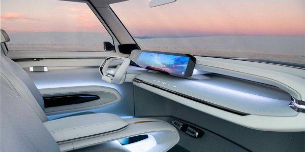 Машината е с 3-редов салон, като има панорамен покрив, 27-инчов дисплей на предния панел и необичаен волан, напомнящ щурвал на самолет. При активизация на специален режим салонът на колата може да се трансформира в истински хол. Вторият ред седалки се превръщат в маса, а предните кресла се завъртат в обратна посока.