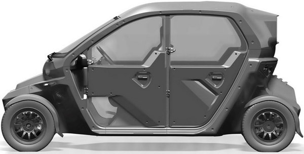 Вторият патентован електромобил, който все още няма име, е с подобен на UV-4 дизайн, но със значително по-къси купе и колесна база. И по-важното - машината е само с едно колело на задната ос. Електрическата триколка очевидно споделя предницата с 4-колесния си събрат, но е с по-обли линии и няма врати. В купето има място за двама пасажери и малко багаж, а инструменталният панел е като този на UV-4. Налице е и люк на покрива.