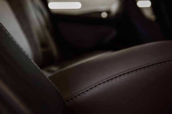 Затова и в ателието се захващат да работа и споменът от чисто белия интериор като в операционна зала е заличен завинаги. На негово място вече ще откриете фина кафява кожа, към чиито краища деликатно е пришит пепитен сив плат - от горе до долу.