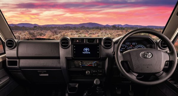 Въпреки, че е представен преди цели 37 години, Land Cruiser 70 беше актуализиран няколко пъти, като при последния фейслифт получи по-модерно арматурно табло. Новата версия получава 6,1-инчов сензорен екран на информационно-развлекателната система, навигация и свързване с Apple CarPlay и Android Auto.