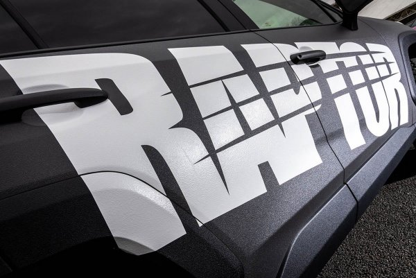 Защитата не е само по каросерията, но и върху пластмасовите елементи, включително брони, калници, корпуси на огледала, колони и др. Показаният RAV4 получава още персонализирани графики отстрани, изглеждащи като драскотини от истински динозавър (раптор), плюс стикери Raptor на капака и на задната врата.