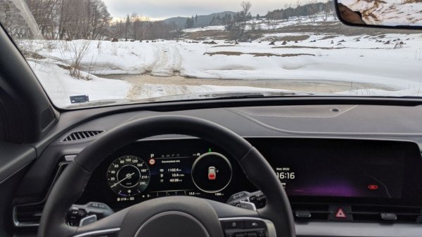 Нямаме забележки към динамиката, особено когато електромоторът подпомага резките стартове. Воланът е достатъчно директен и внушава увереност. Освен това Sportage има нова система за електронен контрол на окачването, която непрекъснато го пренастройва, за да осигури едновременно комфорт и стабилност.
