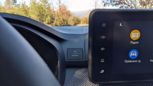Икономията продължава и вътре. Както и при Sandero, и тук можете да имате базовото ниво без какъвто и да било екран на мултимедията. Вместо това получавате удобна поставка, където да монтирате смартфона си, и приложение, така че да управлявате функциите му от волана. В по-високите нива има 8-инчова мултимедия с доста прилична графика.