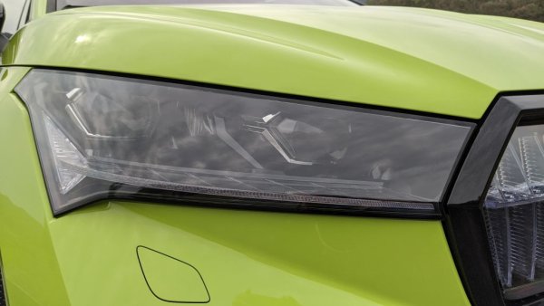Coupe RS получава и доста специфични дизайнерски елементи, за да се отличава от по-пролетарските модели в гамата. Предната броня е уникална, както и джантите, и този електриково зелен цвят. Надписите, емблемите и рамките на прозорците са черни. Серийно се предлага и осветената предна решетка, която в Skoda наричат "кристално лице". Честно казано, на нас ни допада повече другият вариант. Но от българското представителство разбрахме, че почти всички поръчки за обикновения Enyaq са с кристалното лице, така че явно пак не сме разбрали последния писък на модата.