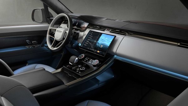 Интериорът на всъдехода е проектиран да бъде по-ориентиран към водача от този на „баткото“ Range Rover. Воланът е същият, но позицията на сядане е с 20 мм по-ниска. Централната конзола се издига нагоре в арматурното табло, на което е поставен 13,1-инчов извит екран на информационно-развлекателната система Pivi Pro на JLR. Има и отделен 13,7-инчов дисплей на приборния панел водача. Системата се актуализира по въздуха, като работи с Apple CarPlay, Android и Amazon Alexa.