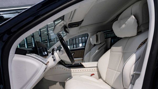 Говорейки за напата, има детайли с бяла такава буквално навсякъде, където погледнете. A от Maybach са стигнали още по-далеч като дори дискретно са дали на информационно-развлекателната система MBUX блестящи акценти от розово злато. Дори и старт бутонът е с пръстен от него, а индивидуалните кресла на втория ред разполагат със специална стойка за шампанско и възглавници от бяла изкуствена козина.