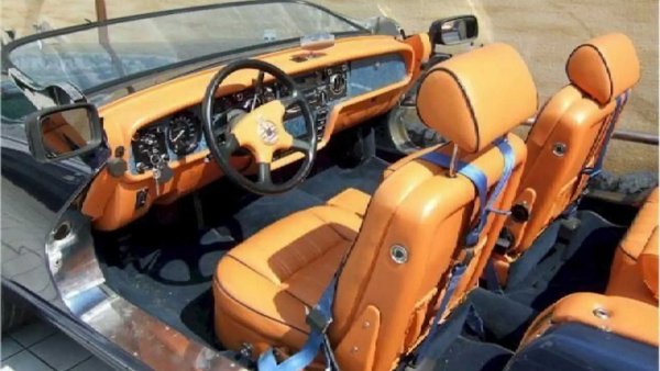 Кабината на ловния Rolls-Royce е покрита със светлокафява кожа със сини шевове, кореспондиращи с цвета на каросерията. Има и елегантен сгъваем покрив, с който са предпазите по-добре от жаркото слънце на мароканската пустиня.
