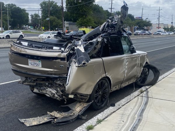 При нея чисто нов Range Rover е успял някак си да се откачи и да падне от автовоза, който го превозвал по път номер 17 в американския щат. След падането е закачил и каращата отзад Honda Accord, с неприятни последици за автомобила и нараняване за шофьора.