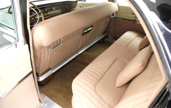 Интериорът е покрит с кожа и текстил, като и тук изобилства от хромирани акценти. Вратите, според продавача са "почти перфектни", както и арматурното табло, което разполага с всички възможни бутони и ръчки за времето си, включително скоростен лост до волана.