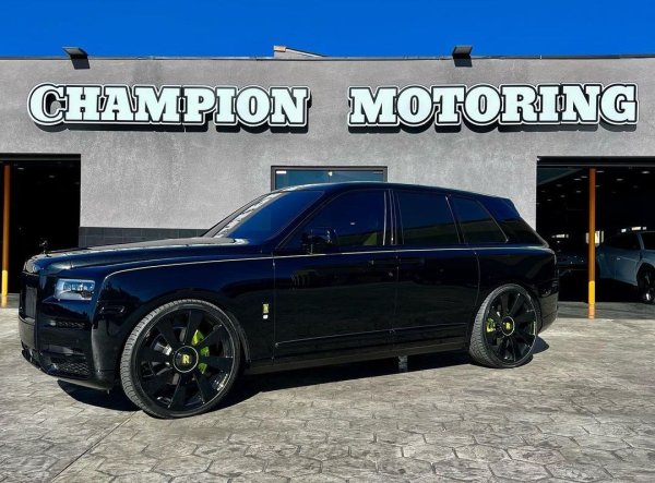 Както стана ясно, новият Cullinan е с черен екстериор, пасващ точно в черния гараж на Мейуедър, в който има още една бройка от модела, няколко Mercedes-а и други мощни коли. Различното, в случая, е интериорът в лаймово зелено, който е изработен във фабриката на Rolls-Royce. Същият цвят се вижда в логото на марката, върху колелата и спирачните апаратите.