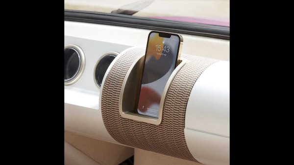 В същото време, воланът е направен от рециклиран мрамор, който също е използван за отделението за съхранение на вещи. Пред шофьора са разположени три цифрови инструментални циферблата, показващи скоростта, заряда на батерията и времето. Освен това има скенер за пръстови отпечатъци за отключване на вратите, както и специален отвор в средата на арматурното табло. В него се поставя смартфон, който ще служи като информационно-развлекателна система на автомобила.