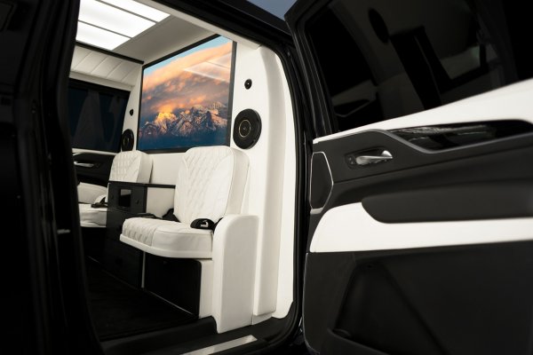 Добавени са сгъваеми маси, вградени системи за масаж на седалката, автоматизирана преграда за водача и 13 см по-висок таван. За по-добър звук са монтирани 19 високоговорителя. Зоната за шофьора може да се удвои, като има голям скрит телевизор за гледане в движение. Таванът е със светодиоди, симулиращи естествена светлина, така че седящите отзад да не се чувстват твърде изолирани от света. Има и седалки за охранители.