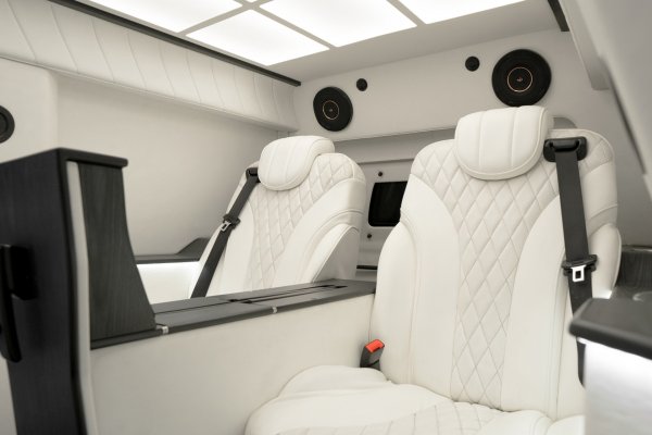 Добавени са сгъваеми маси, вградени системи за масаж на седалката, автоматизирана преграда за водача и 13 см по-висок таван. За по-добър звук са монтирани 19 високоговорителя. Зоната за шофьора може да се удвои, като има голям скрит телевизор за гледане в движение. Таванът е със светодиоди, симулиращи естествена светлина, така че седящите отзад да не се чувстват твърде изолирани от света. Има и седалки за охранители.