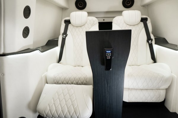 Добавени са сгъваеми маси, вградени системи за масаж на седалката, автоматизирана преграда за водача и 13 см по-висок таван. За по-добър звук са монтирани 19 високоговорителя. Зоната за шофьора може да се удвои, като има голям скрит телевизор за гледане в движение. Таванът е със светодиоди, симулиращи естествена светлина, така че седящите отзад да не се чувстват твърде изолирани от света. Има и седалки за охранители.