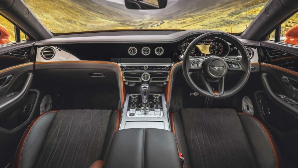 В пилотската кабина също има достатъчно възможности за персонализиране. Bentley предлага безкрайни комбинации от материали и цветове, за да може всеки екземпляр да се отличава от останалите в зависимост от желанието на клиента. Сред най-интересните покрития е Dinamica Pure, което се състои от 73% рециклиран полиестер. Комфортът е много висок за всички пътници, като всички седалки са оборудвани с функции за вентилация, отопление и масаж.