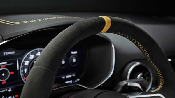 Някои отличителни щрихи също са направени в интериора на TT RS Coupe Iconic Edition, който е умишлено тъмен. Има RS спортни седалки, монтирани като стандарт с фини странични панели в сив цвят и централни панели в черна алкантара. Жълти шевове тип пчелна пита допринасят за поразителния външен вид. Различни други повърхности са покрити с черна алкантара с жълти контрастни шевове, включително волана. Номерацията на автомобила се вижда на скоростния лост.