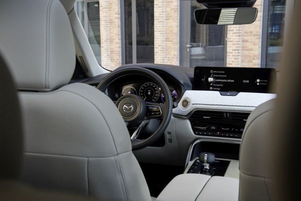 Подлакътника е огромен и предните седалки са сравнително удобни, въпреки че като на CX 5 са една идея по-малки отколкото трябва да бъдат. Инфотейнмънта и дигитално табло са доста по-различни от другите модели на Мазда. Интеграцията на Apple CarPlay например работи вече безжично. Като цяло интериора на колата е страхотен и се доближава много до премиум модели на други марки.