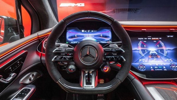 Инфотейнмънт-системата е в състояние да планира най-бързия и удобен маршрут, като изчислява спирките за зареждане и взема предвид състоянието на трафика, както и стила на шофиране. Тя също така интегрира много развлекателни услуги, включително ZYNC услуги, които позволяват на пътника да предава поточно съдържание. Налице и гласовият асистент „Hey Mercedes“.