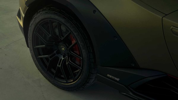 Освен че е по-висок, Huracan Sterrato е и малко по-широк – при предната следа с 3 см, а при задната – с 3,3 см. Задвижването е към всички колела, като те са с 19-цолови джанти, обути със специален комплект гуми Bridgestone Dueler AT002 за всички терени, направени специално за този автомобил. Това са нископрофилни гуми от серия 40, но имат по-голяма странична стена за защита и комфорт при излизане извън настилката.