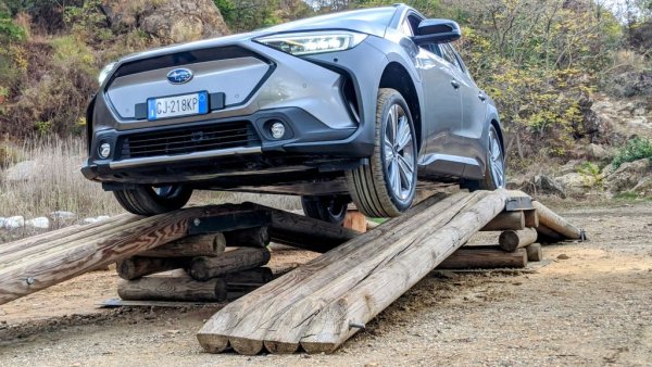 Досега електрическото задвижване не изглеждаше много съвместимо с офроуда. Да оставим факта, че с нормален всъдеход можете просто да сложите две туби с бензин в багажника и да си осигурите хиляда километра автономия. По-големият проблем е другаде - в батериите. Обикновено те са в пода на автомобила, тежат много и са уязвими за удари - последното нещо, което бихте искали, ако атакувате някой скалист склон. Тъкмо затова видът на офроуд полигона, който от Subaru ни бяха подготвили за теста на Solterra, искрено ни изуми.
