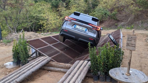 Досега електрическото задвижване не изглеждаше много съвместимо с офроуда. Да оставим факта, че с нормален всъдеход можете просто да сложите две туби с бензин в багажника и да си осигурите хиляда километра автономия. По-големият проблем е другаде - в батериите. Обикновено те са в пода на автомобила, тежат много и са уязвими за удари - последното нещо, което бихте искали, ако атакувате някой скалист склон. Тъкмо затова видът на офроуд полигона, който от Subaru ни бяха подготвили за теста на Solterra, искрено ни изуми.