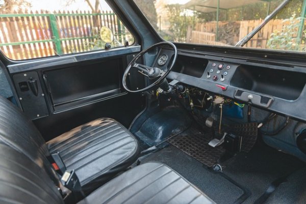 На стоманеното шаси е монтирано тяло с форма на кутия от фибростъкло, като са използвани части от бюджетните модели Fiat 500 и 124. Окачването отпред и отзад е независимо.