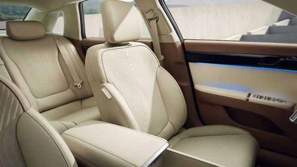 Компанията публикува първи снимки на интериора на петметровия седан в най-луксозното му изпълнение, което ще е и най-скъпото. Автомобилът получава 20-цолови джанти, отопляеми и вентилирани задни седалки, прожекционен екран, електрически завеси, адаптивно окачване и задвижване на всички колела, което е опция за модела.