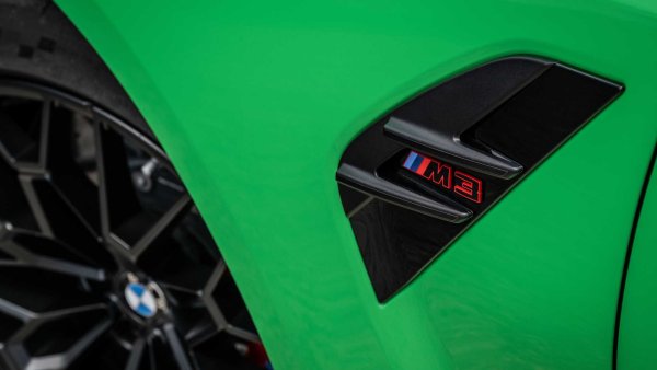 Дизайнът на автомобила прави впечатление не само с огромната бъбрековидна решетка. Завършено в удивителна сигнално зелена боя от каталога Individual, M3 CS има жълти дневни светлини, които повтарят тези на M4 CSL, M5 CS и на състезателните автомобили. Подобно на хардкорното купе, контурът на решетката при седана е завършен в червено.