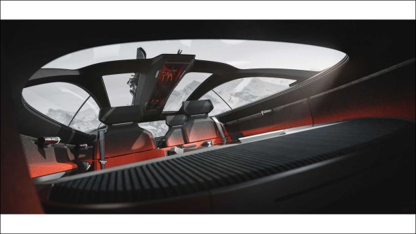 Кабината е четириместна, а когато колата е в автономен режим, таблото, воланът и педалите изчезват, но голямата звукова лента и вентилационният отвор с пълна ширина остават функционални. Седалките са прикрепени към централната конзола, която разполага с възможности за отопление и охлаждане, но липсват традиционните екрани и контроли.