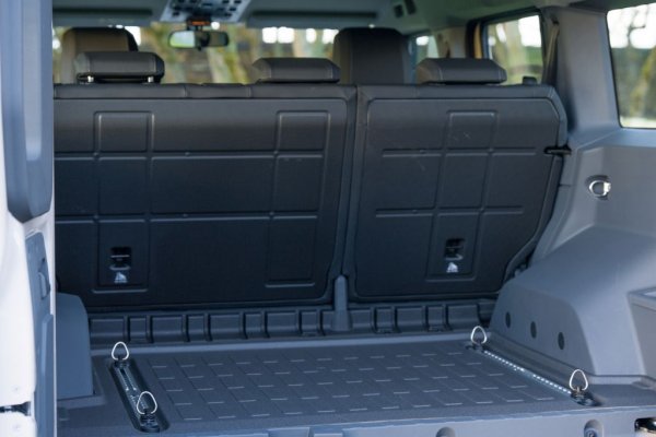 Това е и доста практичен автомобил. Петместната версия ви дава 1152 литра товарен обем, който скача до над 2000 литра при смъкнати задни облегалки. Отделно имате тази много надеждна система за окачване на товари отвън. Конструкцията на вратите е подсилена и издържа до 45 килограма товар. Покривът при спряла кола издържа до 450 килограма.