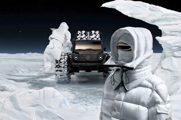 Германският производител Mercedes-Benz представи необичайна концептуална версия на G-Class, която е вдъхновена от популярните пухени якети Moncler. Автомобилът с огромни подплатени колела, наподобяващи якетата, тип „пухенки“, е наречен Project Mondo G и беше представен на шоуто Moncler Art of Genius по време на Седмицата на модата в Лондон.