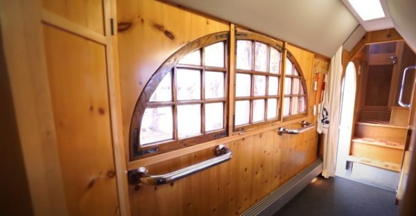 В другия край на автобуса има друга спалня, която става открита след отваряне на част от покрива, подобно на багажника на кола. Гюнтер не препоръчва да се спи на открито, но по желание тази зона може да се преустрои в тераса.