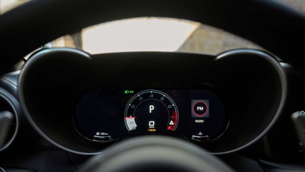 В салона ще има елементи от въглеродни влакна, комбинирани с естествена кожа алкантара със златни шевове и бродирани надписи "100" до логото на Quadrigoflio. Чисто нов 12,3-инчов TFT-дисплей е интегриран в арматурното табло.