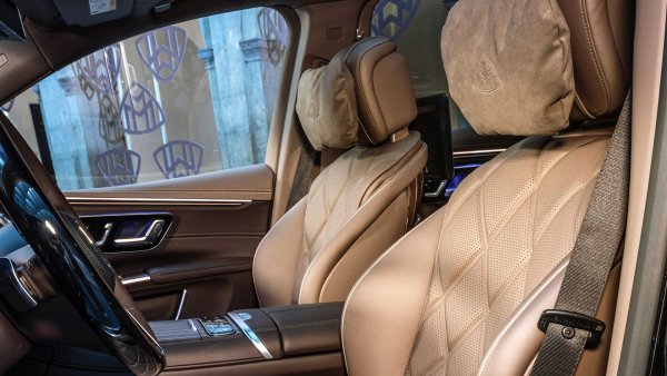 Конзолата също така добавя отопляеми държачи за чаши, четири USB-C порта, два HDMI порта и корпус за таблет. И естествено, налични са посребрени чаши за шампанско и подвижен хладилник. Два 11,6-инчови дисплея се намират на облегалките на предните седалки и позволяват достъп до информационно-развлекателния пакет MBUX.