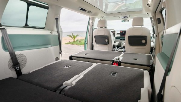 Предлаганият като опция трети ред е предназначен за двама пътници. Интересното е, че меките подлакътници и държачите за чаши, вградени в облицовката на багажника, бяха на модела ID.Buzz от самото начало - Volkswagen използва едни и същи вътрешни панели за всички пътнически версии.