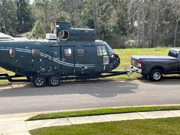 Фюзелажът (тялото на летателния апарат) на хеликоптера с отстранени опашка, нос и перки е монтиран на двуосно ремарке. Кабината на хеликоптера изобщо не е пипана, като според Блейк Морис това е чудесно място за сутрешно кафе. В същото време те се опитват да се придържат към темата за авиацията, интегрирайки запазените компоненти в ежедневието. Например лостовете за управление са превърнати в държачи за кърпи.