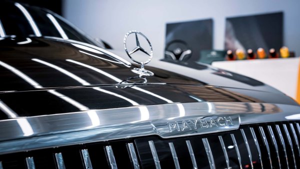 Започвайки от екстериора, елементът, който най-напред привлича вниманието на флагмана, е новата голяма радиаторна решетка, персонализирана с няколко детайла и в сатенен цвят. Тя е по-малко ярка от тази на оригиналния Maybach, като на свой ред е съчетана с лети джанти в класическия дизайн на луксозното отделение на Star, но в тъмен цвят.