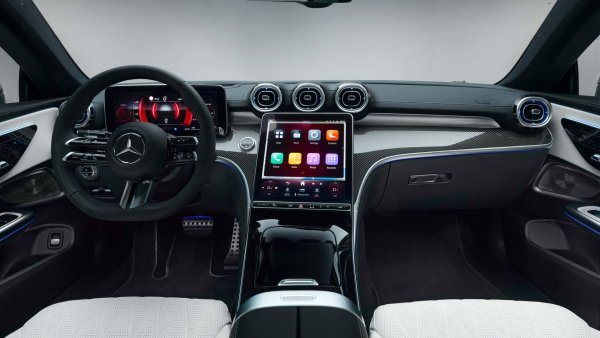 Интериорът на CLE до голяма степен повтаря C-Class (W206). Тук има 12,3-инчов екран на приборния панел, 11,9-инчов мултимедиен екран MBUX (операционната система е в най-новата версия – като на E-Class), проекционен дисплей и същия вентилационни дефлектори във формата на турбини. Предлагат се 3 опции за аудиосистема, като най-скъпата е Burmester със седемнадесет високоговорителя (включително два в подглавниците).