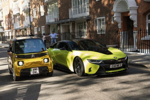 Електрическата триколка може да бъде забелязана и редом със суперлуксозните Rolls-Royce Phantom Drophead Coupe и Bentley Mulsanne, както и до една много скъпа класика – Aston Martin DB5. И накрая, Ami се движи редом до големи SUV като Mercedes-AMG G63 и камуфлажен Land Rover Defender, показвайки, че размерът няма значение, когато трябва да направиш впечатление.