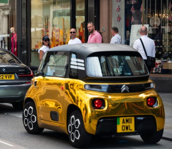 Позлатен Citroen Ami предизвиква суперколи в Лондон